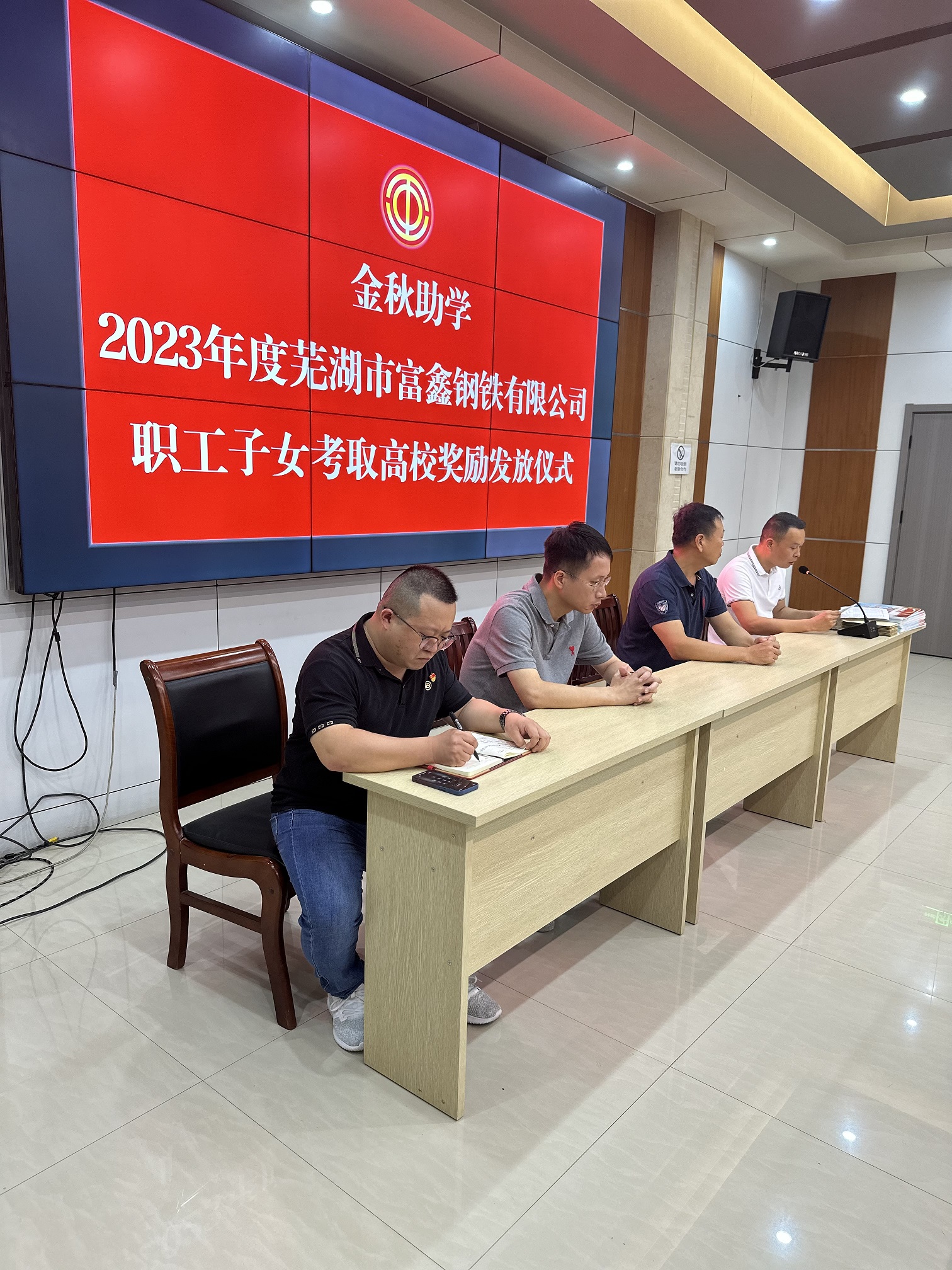 8月11日下午,在蕪湖市富鑫鋼鐵有限公司舉行的2021“金秋助學”獎金發放儀式上,向今年考取電子科技大學、東南大學、...